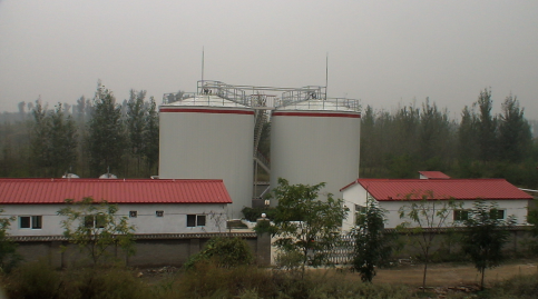 采用升流式固体床(USR)中温厌氧发酵工艺,原料从底部配水系统进入消化器,依靠进料和产气的上升动力按一定的速度向上流经含有高浓度厌氧微生物的污泥床时,有机物得以分解发酵并产生沼气。